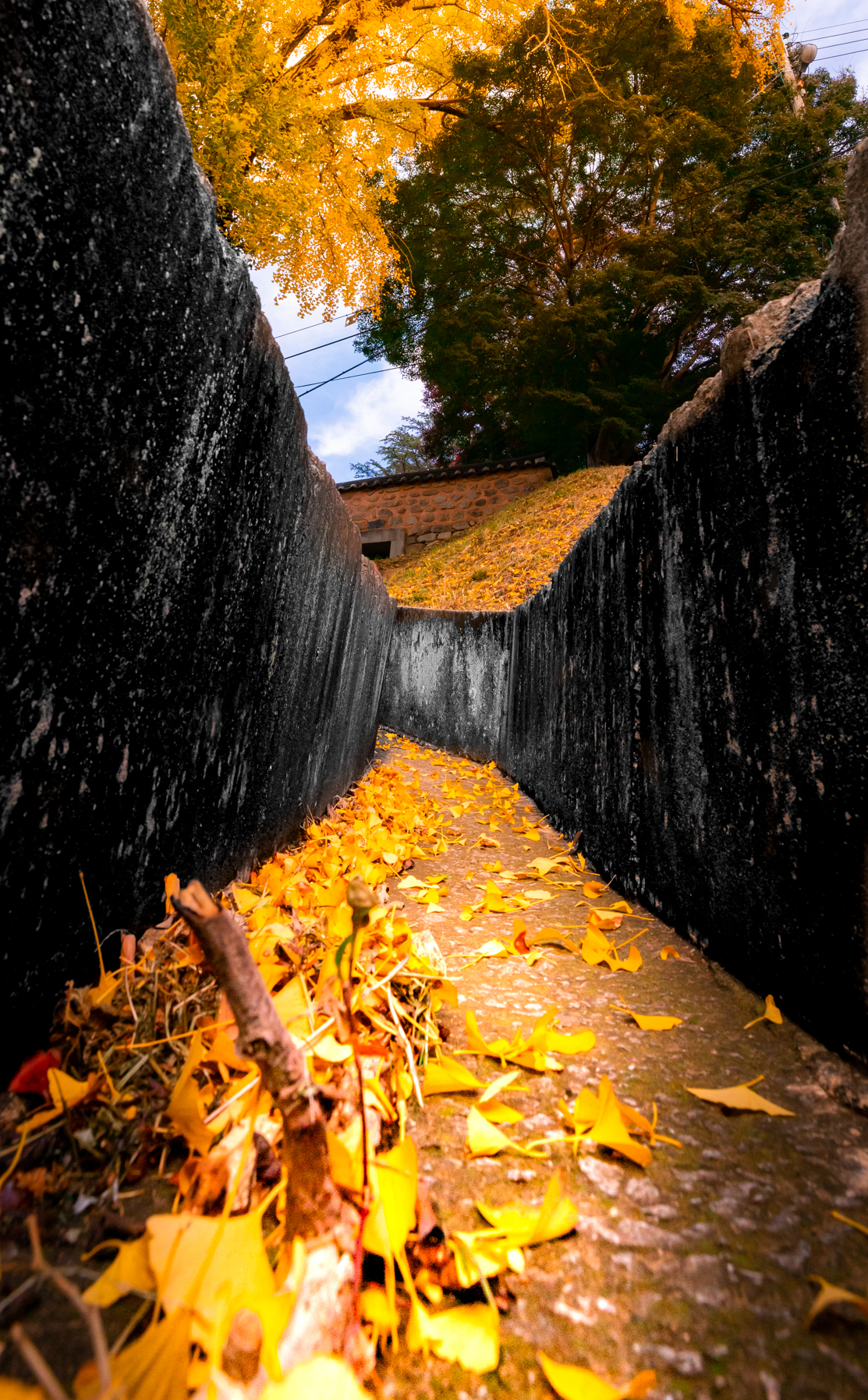 차로 20분 달려 사진 촬영 하였습니다. 은행잎은 90프로 이상 노랗게 물들어