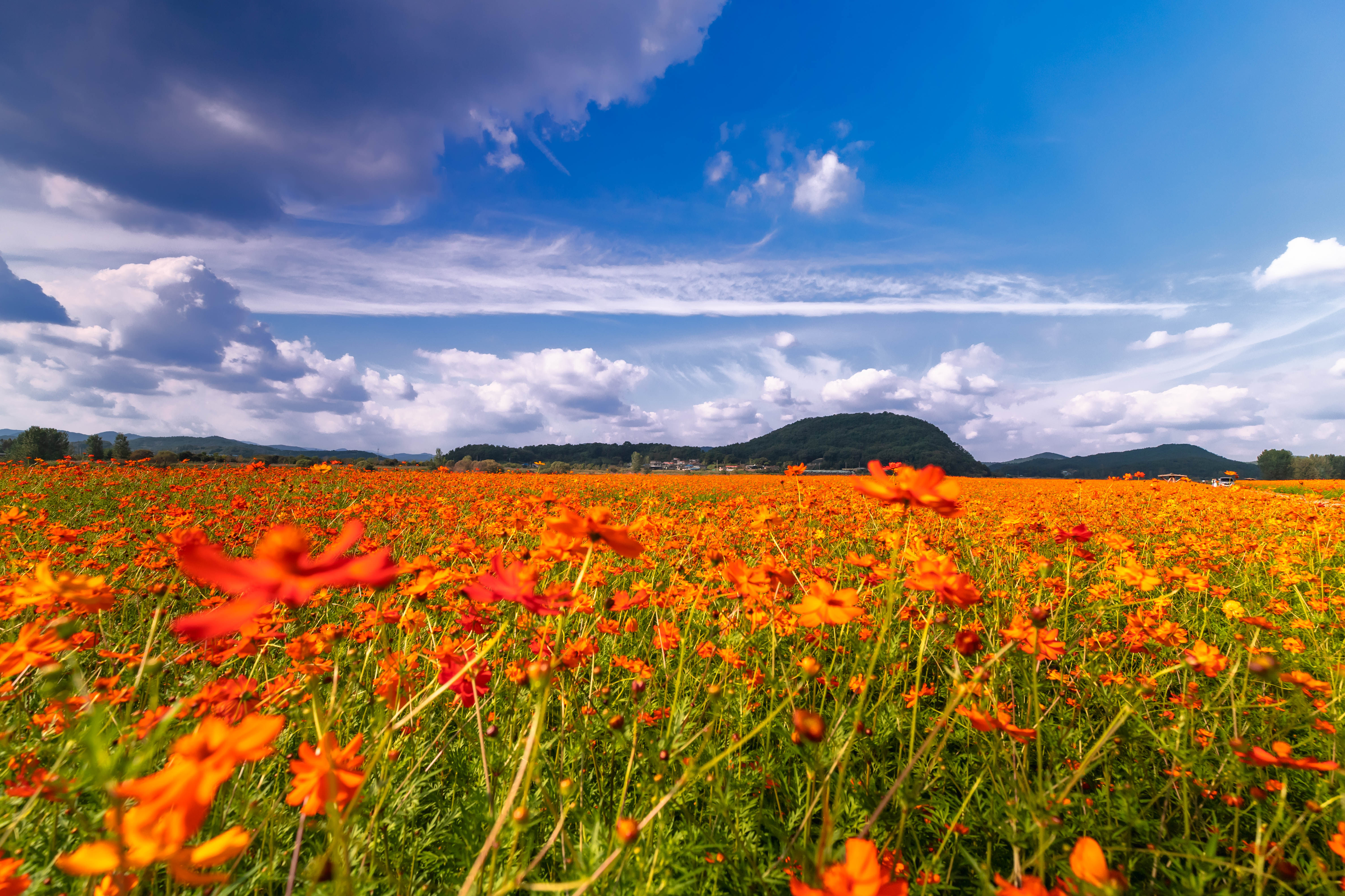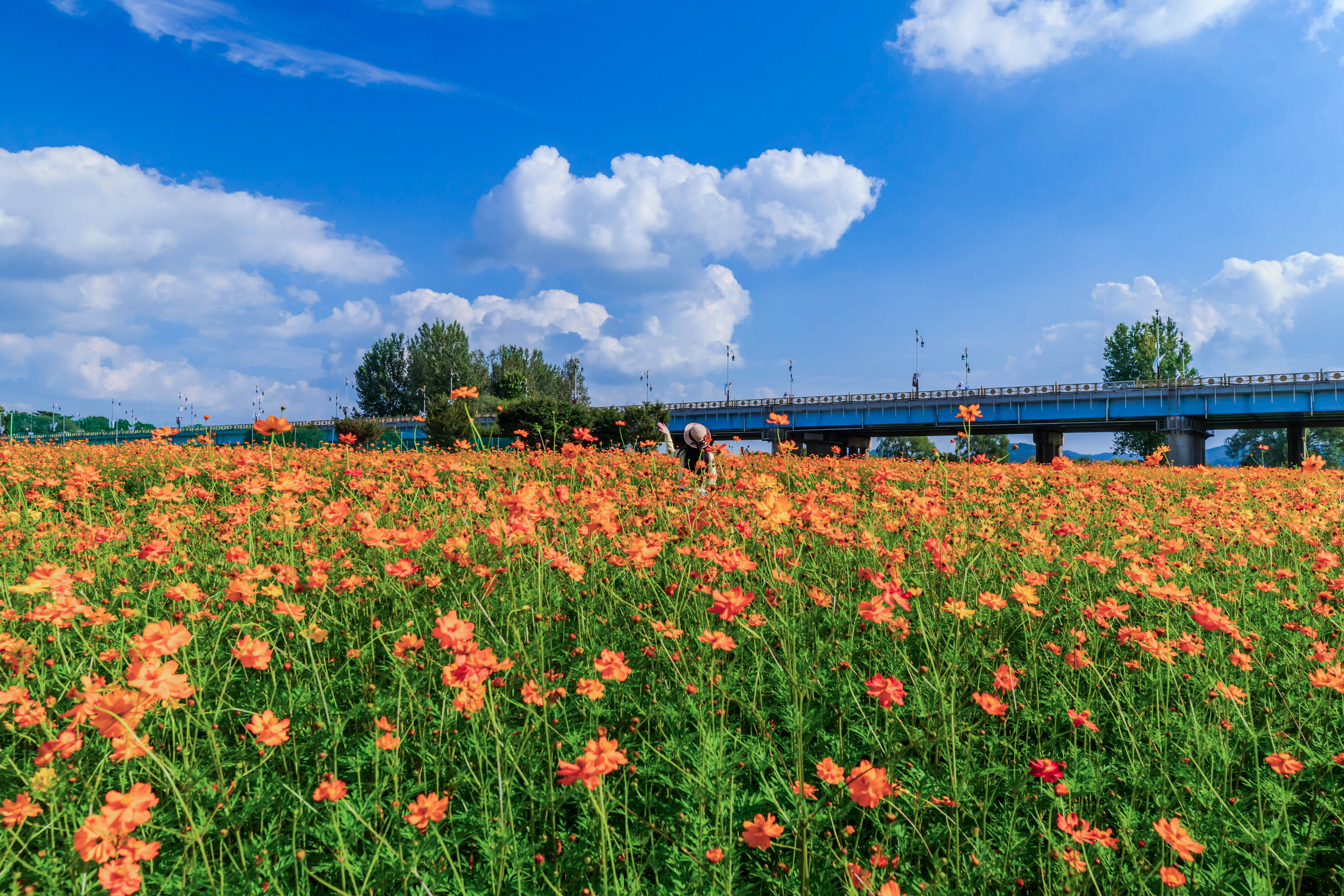 공원 전체를 뒤덮은 주황빛 코스모스는 가을 햇살을 받아 더욱 찬란하게 빛납니다. 멀리 보이는 청산과 백마강 다리를 배경으로 펼쳐진 꽃밭은 마치 한 폭의 수채화 같아요. 카메라를 어디로 향하든 인생샷이 보장되는 포토존이랍니다.