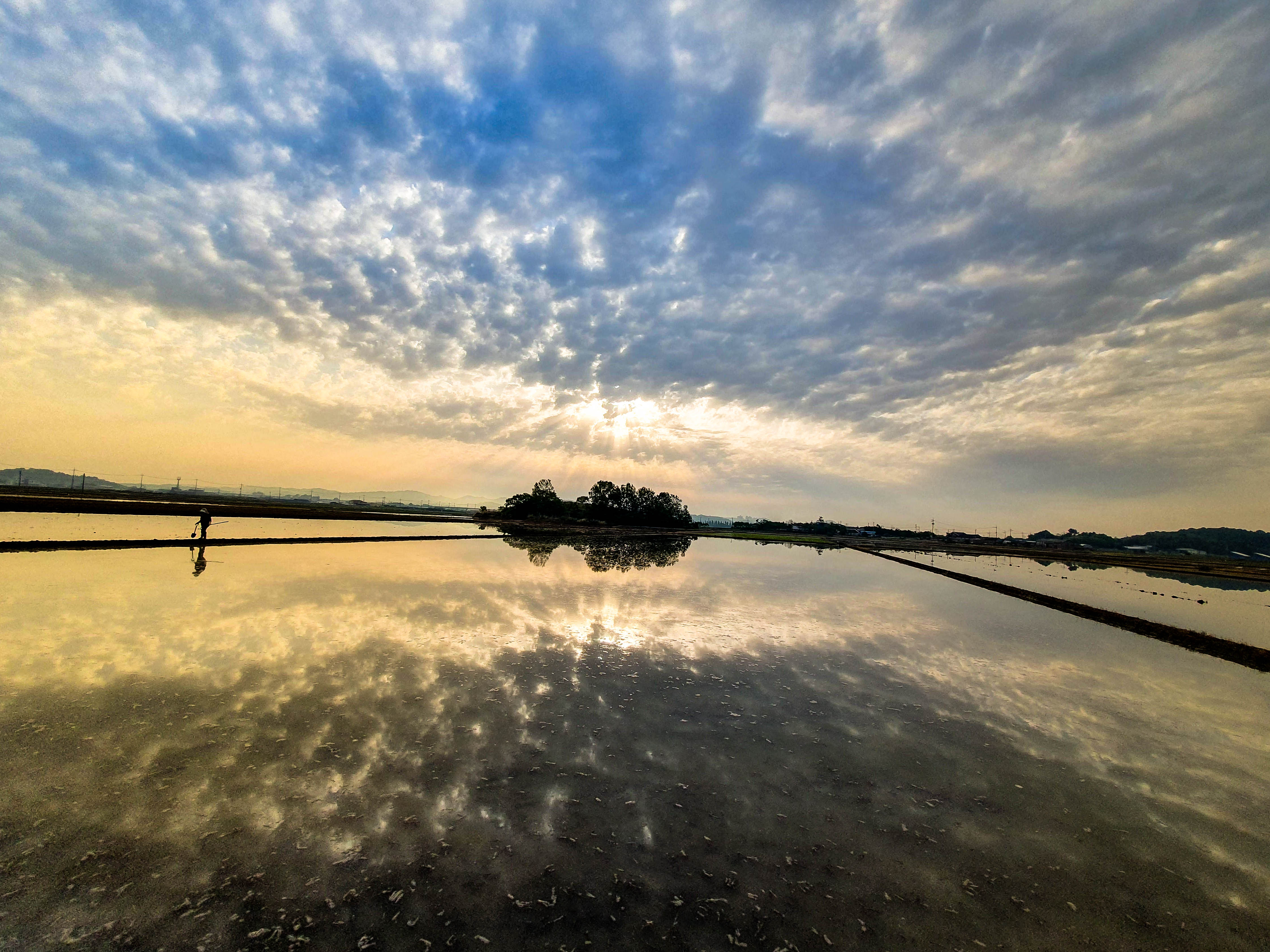 물이 고인 논이 마치 하늘을 품은 거울 같았고,